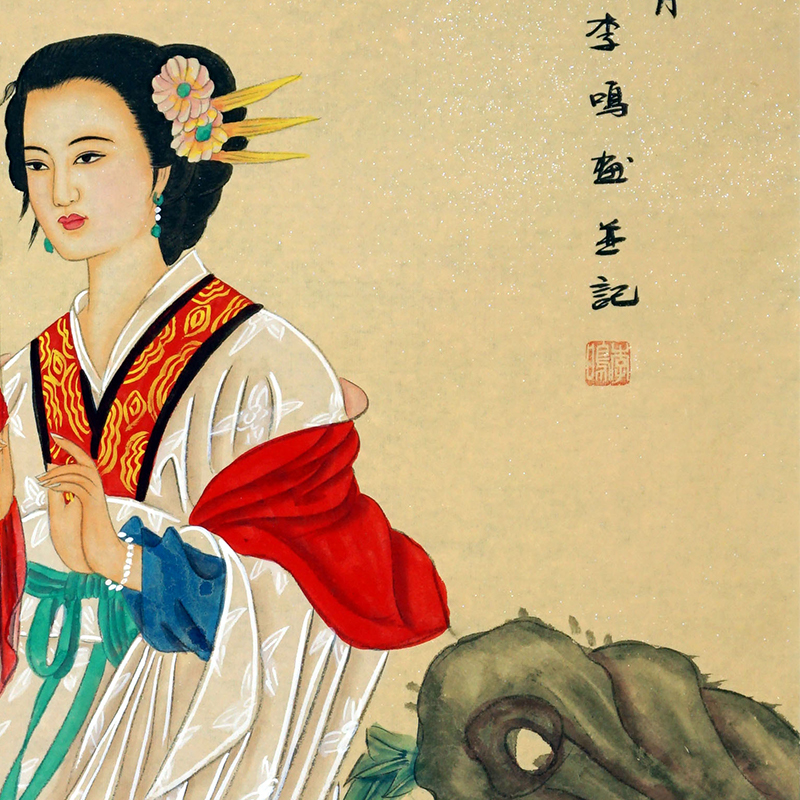 李鸣,1958年生于山东牟平,现为烟台大学美术学教授, 中国美术家协会会员。专攻画仕女画,古代、现代仕女都画,技巧趋向成熟,意境的追求和墨色的情调都颇有自己的独特面貌。李鸣不迎合市场,专心走艺术之路,他在人品与艺品的统一上有所追求,难能可贵,赢得了周围人们对他的喜欢。他不能像大写意画家那样运笔浑酒自如;他需要精雕细刻耐心描绘,笔笔传情一丝不苟,勾勒与探染又不可滞板。一幅作品不只表现的是技术,更重要的是诗情画意,给人的是一种美的艺术境界。