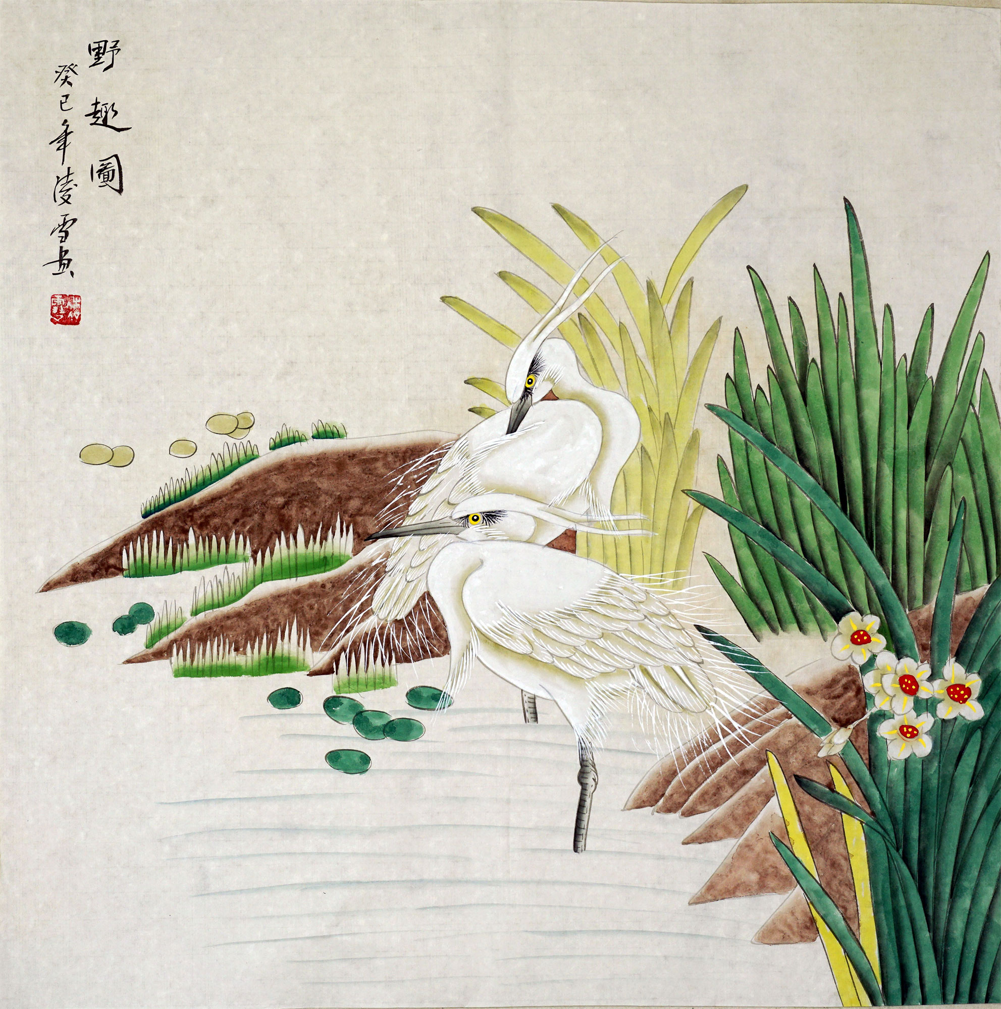藏品编号:180416041凌雪,生于1955年,当代工笔画画家,毕业于中央美术学院工笔画系,师从金鸿均先生。其人自幼临摹中国历代花鸟画大师精品。擅长风水画,山水画。从事绘画创作已有二十余年。主要画工笔花鸟画,工笔仕女画。其绘画风格细腻、艳丽、富有神韵。凌雪的作品曾多在多家报刊发表被国内外多家画廊和个人收藏。